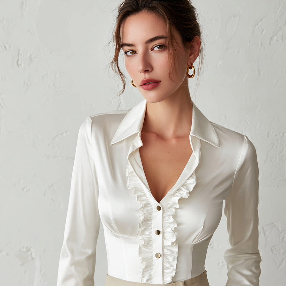 Elegant Ruffle Women's Satin Long Sleeve Blouse
